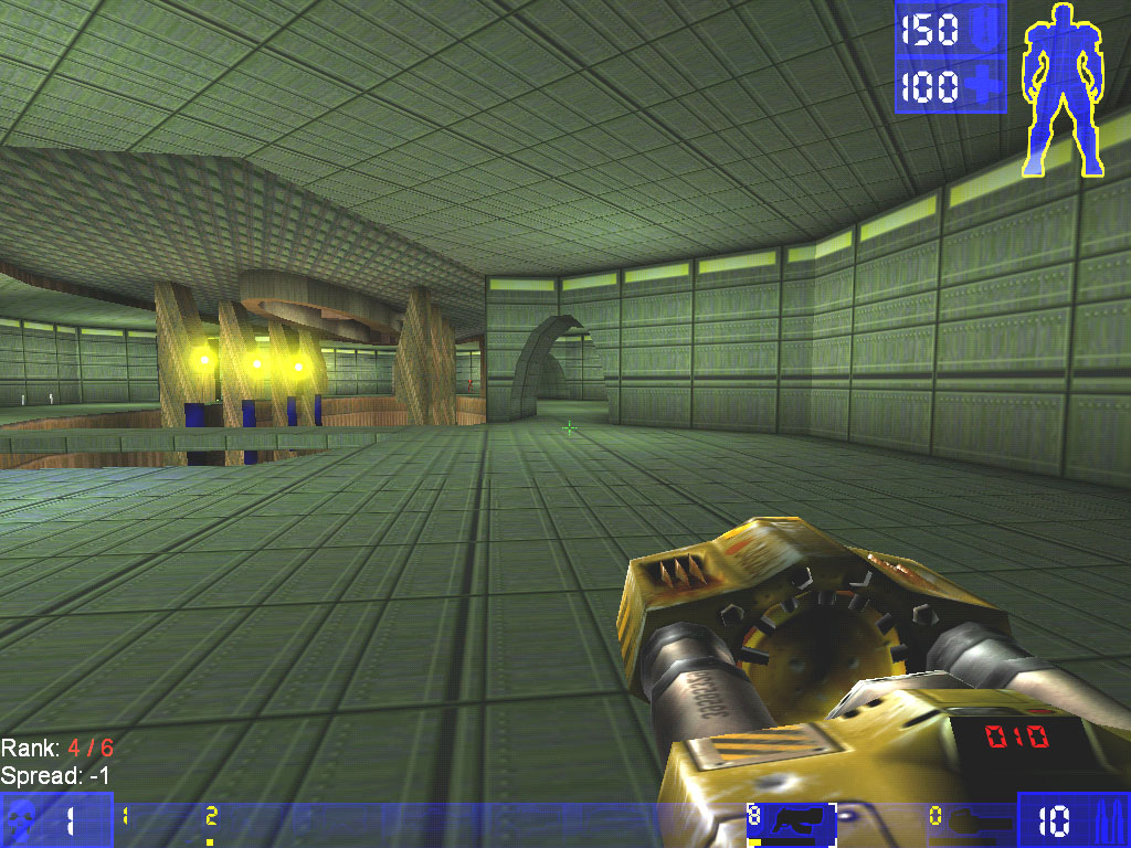 Выше приведен фрагмент из игры Unreal (Direct3D), полученный на видеокарте на базе NVIDIA GeForce2 GTS при включенной трилинейной фильтрации. А ниже - тот же фрагмент, полученный в Glide на 3dfx voodoo5 5500 также при установках по умолчанию: