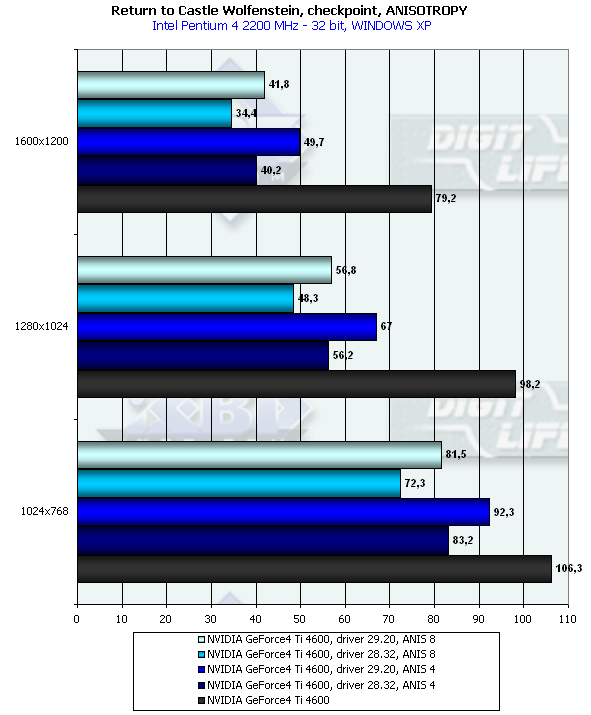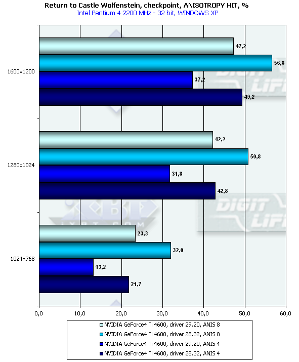 Последние драйверы улучшили положение GeForce4 Ti в плане производительности анизотропии, поэтому эти