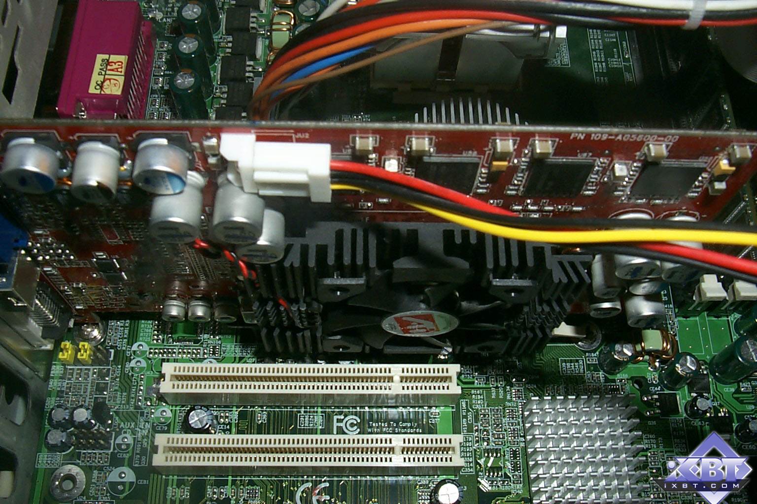 - память - 128MB DDR SGRAM в 8-ми микросхемах Hynix 3.6ns, форм-фактора BGA. память работает на частоте 270 (540) МГц, 128-битная шина обмена с чипсетом;