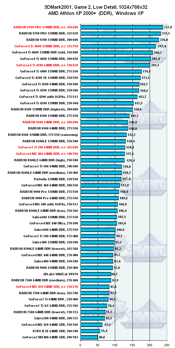 3DGiТоги сентября 2002 года: 3DMark2001,Game2 — Low details, Athlon, 1024x768, Windows XP