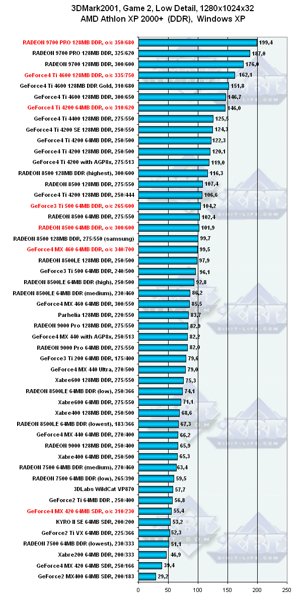 3DGiТоги сентября 2002 года: 3DMark2001, Game2 — Low details, Athlon, 1280x1024, Windows XP