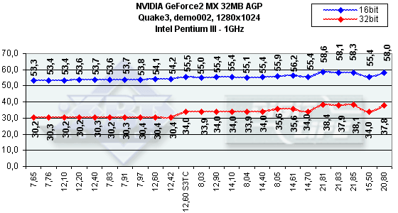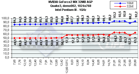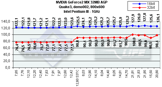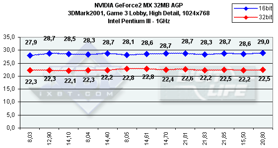 Что касается 14.*, то ситуация неоднозначная. В каких-то играх очень неплоха 14.10, а где-то и последняя 14.70. Detonator XP (версия 21.81) продемонстрировал некоторый рост производительности, однако есть нарекания на стабильность работы этого драйвера. Это все улучшено уже в последующих 21.83 и 21.85 версиях.