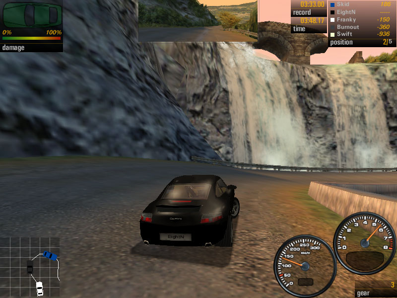 Как мы видим, в Need For Speed: Porshe 2000 туман отсутствует, а в 3DMark2001, Game1 можно видеть очень неприятную картину: