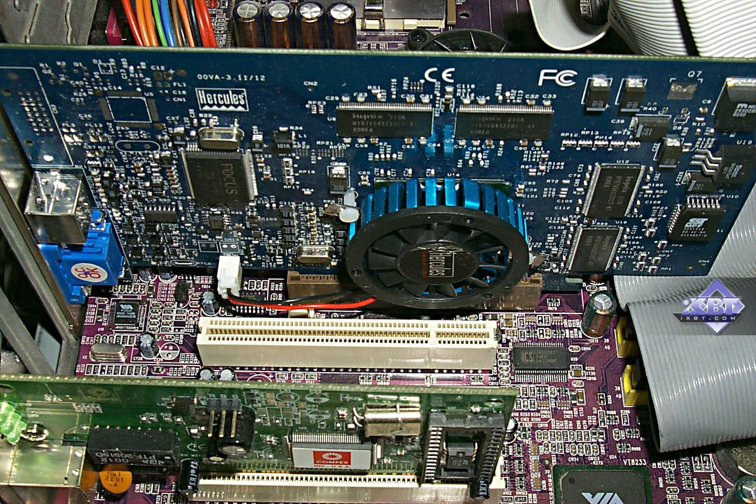- память 64MB SDRAM в 8-ми микросхемах Hynix 4,7 ns, частота работы 200 МГц;