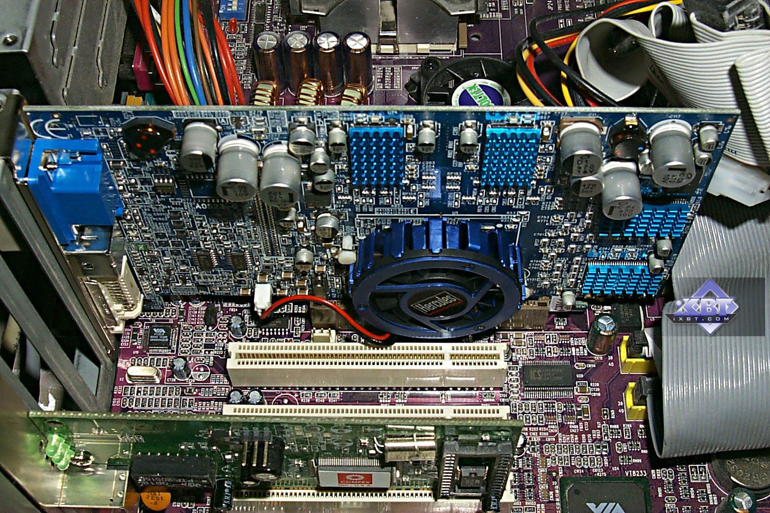 - память — 128MB DDR SGRAM в 8-ми микросхемах Samsung 3,6 ns, частота работы снижена до 200 (400) МГц, 128-битная шина обмена с чипсетом;