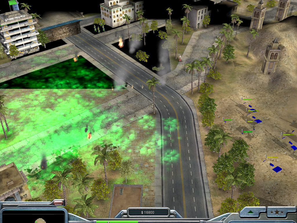 | При форсированном из драйвера антиалиасинге и включенном в настройках игры эффекте "нагретого воздуха" (Heat Effects), экран становится черным (за исключением некоторых битмапов) при появлении на нём того самого эффекта нагретого воздуха (например, при изготовлении на американской фабрике Microwave Tank). |  |
