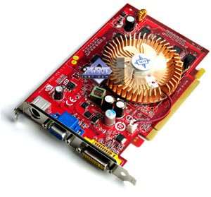 Микросхемы памяти GDDR2. Время выборки у микросхем памяти 2,5 ns, что соответствует частоте работы 400 (800) МГц, память на ней и функционирует. Частота работы GPU — 460/1188 MHz. Шина обмена с памятью — 128 bit.