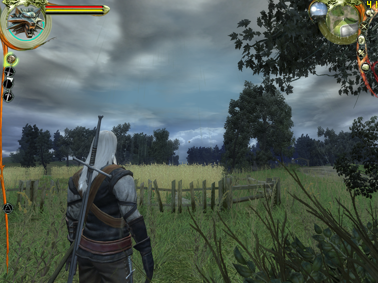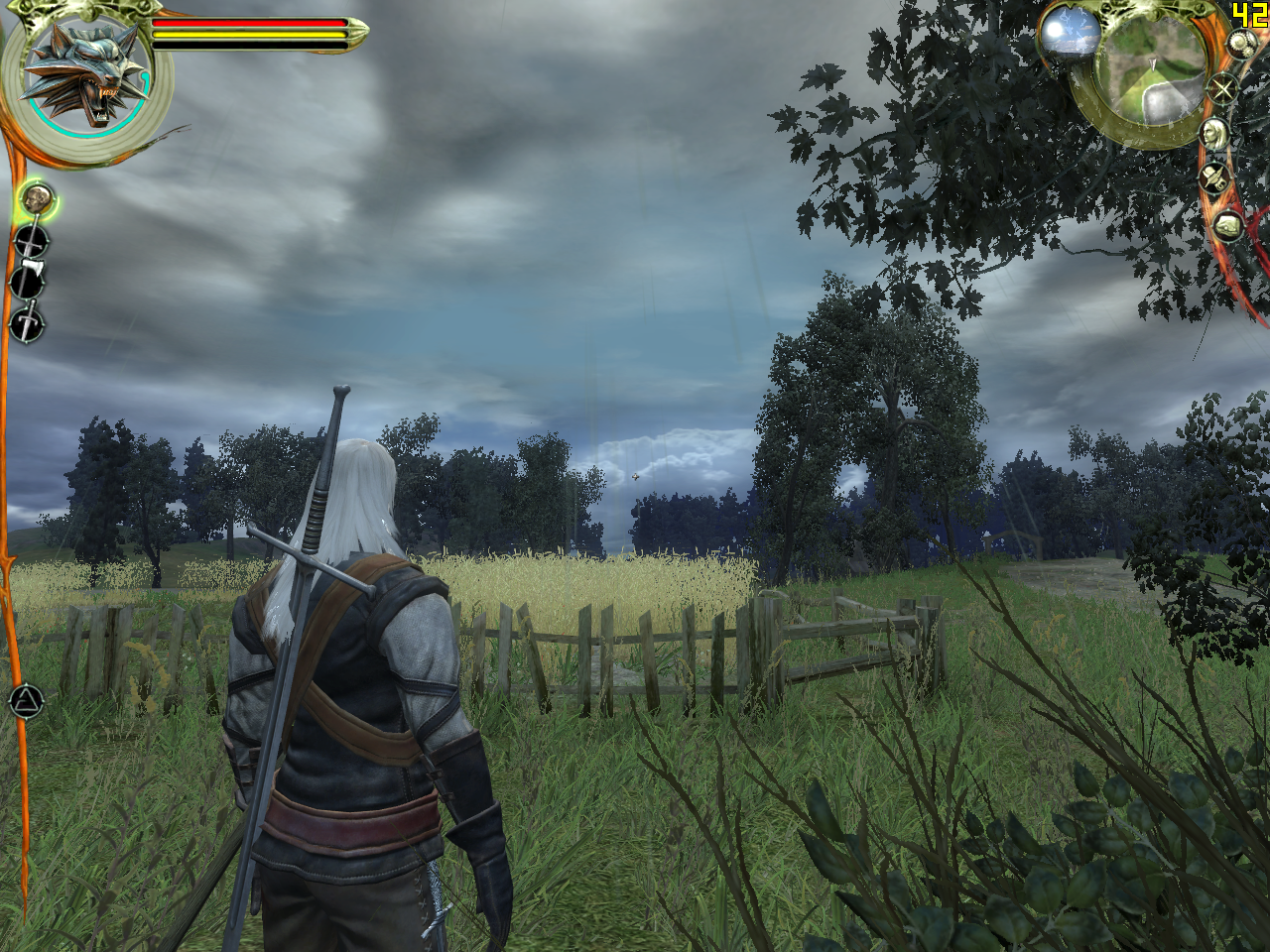 The Witcher, к сожалению, не умеет сохранять вьюпоинт, поэтому нам пришлось выставлять его вручную — идеального соответствия скриншотов не ждите. Впрочем, для оценки качества сглаживания прозрачных текстур оно, пожалуй, и не требуется.