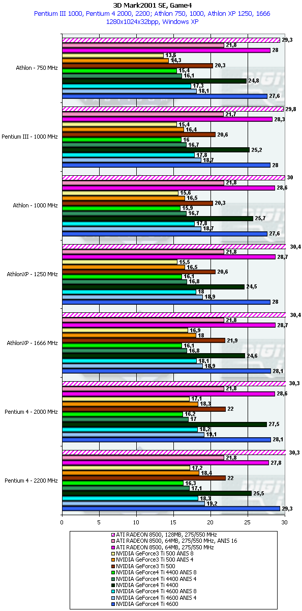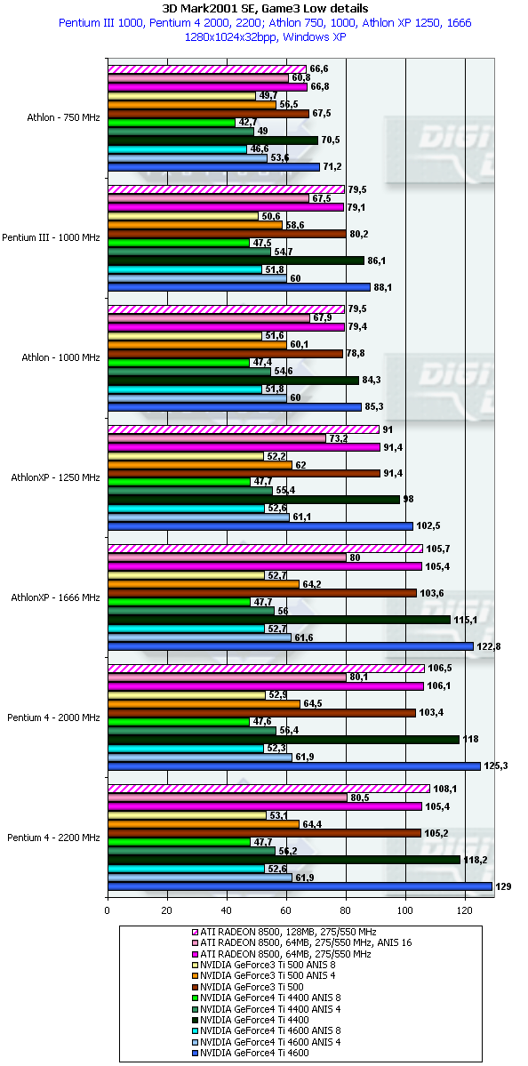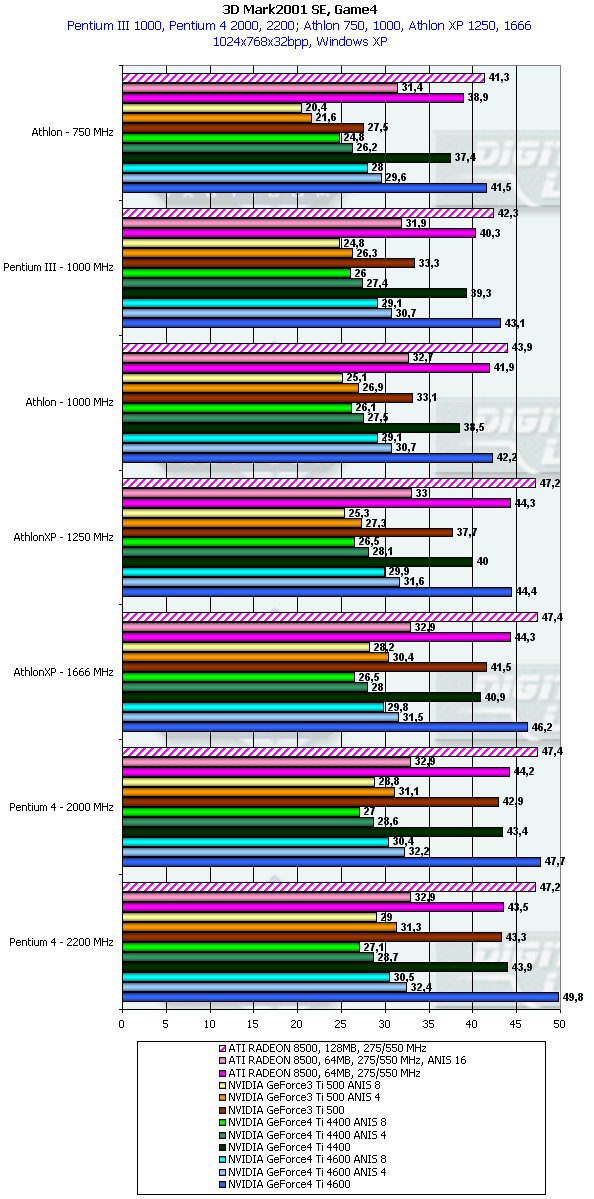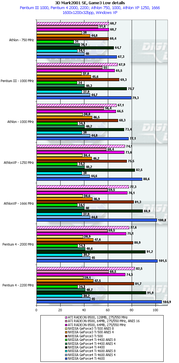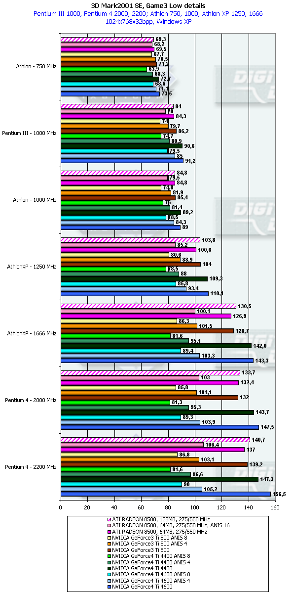 Примеров тут я также не привожу, поскольку никакой разницы между RADEON 8500 и GeForce4 Ti в плане качества в данном тесте нет.