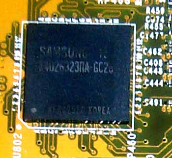 Микросхемы памяти марки Samsung, время выборки 2.8 ns, что соответствует примерно 357 (714) МГц. Память функционирует на частоте 325 (650) МГц.