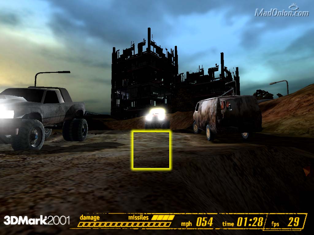 - MadOnion 3DMark2001 Pro — синтетический тест, демонстрирующий работы платы в Direct3D при использовании пиксельных шейдеров (Game4) в условиях чрезвычайно сложных сцен.