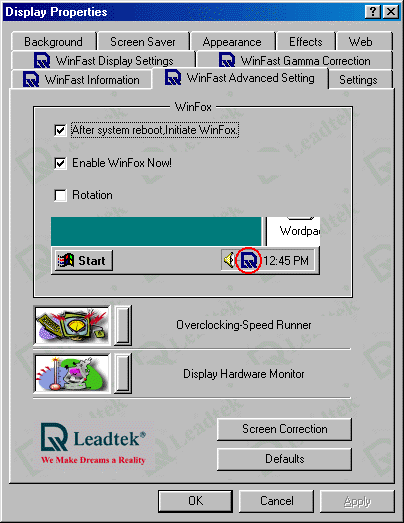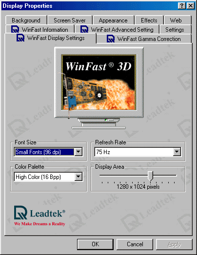 В видеокартой поставляются новейшие драйверы от Leadtek, созданные на базе драйверов от NVIDIA версии 12.00. В состав программного обеспечения входит фирменная утилита WinFox, позволяющая более качественно и удобно настроить работу видеокарты. Мы уже рассматривали неоднократно работу этой утилиты, однако нелишне будет напомнить.