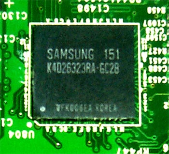 Микросхемы памяти марки Samsung, время выборки 2.8 ns, что соответствует примерно 357 (714) МГц. Память функционирует на частоте 325 (650) МГц.