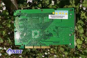 Дизайн платы полностью схож с ранее рассмотренной нами картой ABIT Siluro T400. Отличие состоит лишь в цвете PCB. Мы можем заметить, что точно также, как и в случае карты от ABIT, на процессоре установлен только радиатор, вентилятора нет. Поэтому о разгоне GPU можно особо и не мечтать, не установив дополнительного охлаждения. Впрочем, для GeForce2 MX400 это и неважно, когда производительность полностью зависит от быстродействия видеопамяти.