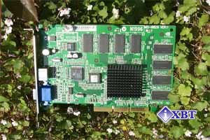 Микросхемы памяти EliteMT, время выборки 5ns, что соответствует частоте в 200 (400) МГц. На этой частоте память и работает. Да, это рядовая карта на базе GeForce2 Pro, поэтому даже увидительно было ожидать каких-либо сюрпризов от нее. В лице этой платы мы видим просто копию reference card.
