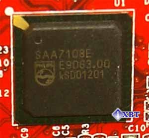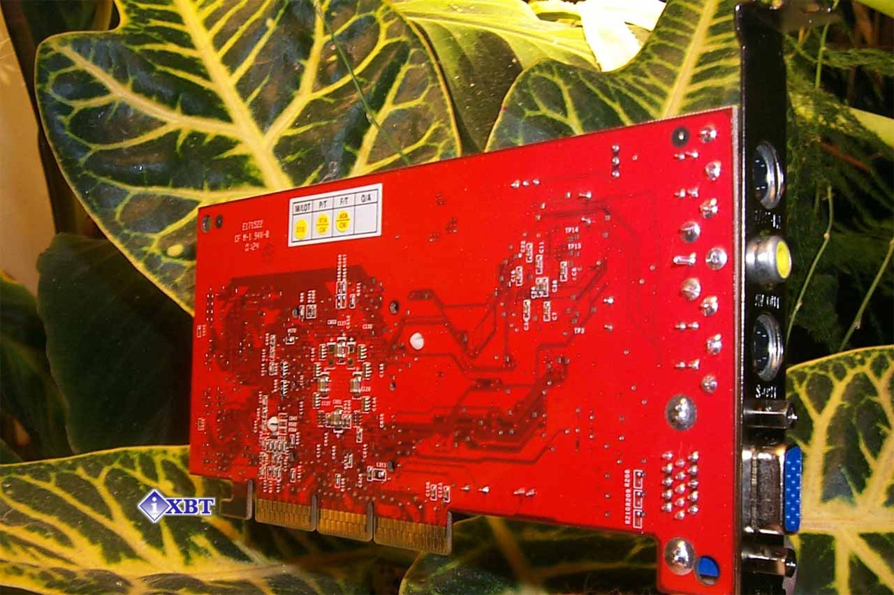 На плате установлена дочерняя карта с TV-out (чип Conexant BT819), гнездо S-Video. В поставку входит переходник S-Video-to-RCA, поэтому все смогут без проблем воспользоваться этой функцией карты.