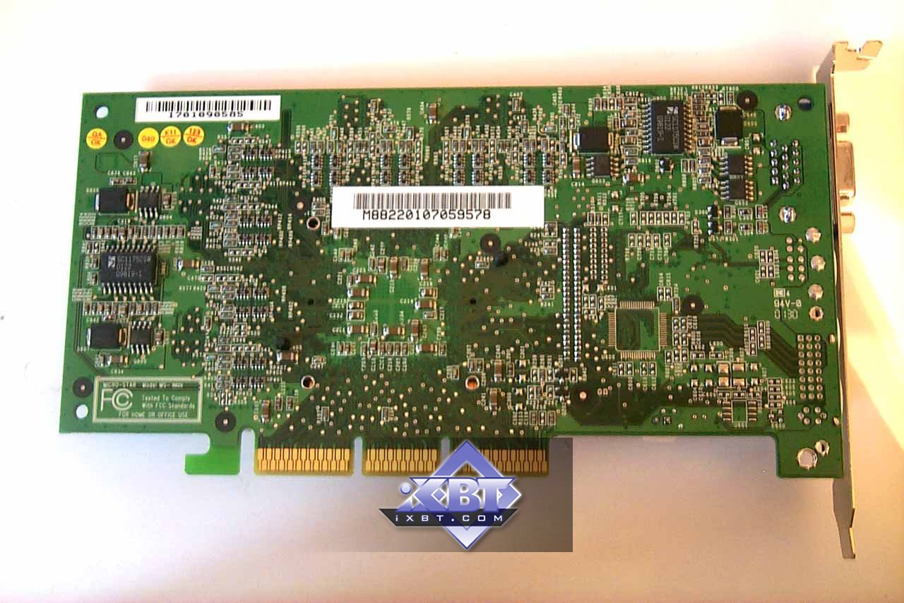 Карта MSI GF3 Pro-VT64D (MS 8822) имеет AGP x2/x4 интерфейс, 64 Мб DDR SDRAM памяти, размещенной в восьми микросхемах на лицевой стороне PCB.