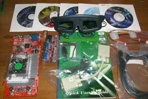 Вернемся к стерео-очкам. Можно обратить внимание на то, что на дочерней карте есть два гнезда для таких очков, то есть устройство позволяет не одному, а двум пользователям подключить подобные очки (а они по конструкции ничем не отличаются от тех, что поставляет ASUSTeK или ELSA, но гораздо удобнее и легче, чем те же асусовские). Вопрос: а зачем двум пользователям смотреть на игру, в которую играть может только лишь один? А дело в том, что основная цель данных очков с точки зрения MSI -получить стерео-эффект при просмотре фильмов или роликов. Для чего программисты этой компании написали специальное ПО — MSI 3D Theater. Эта программа представляет собой DVD-плеер, способный воспроизводить не только MPEG2-ролики, но и иные, при этом есть возможность активизиации стерео-режима: