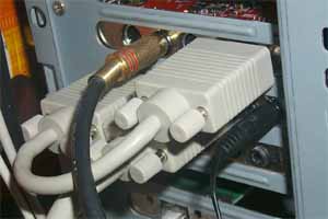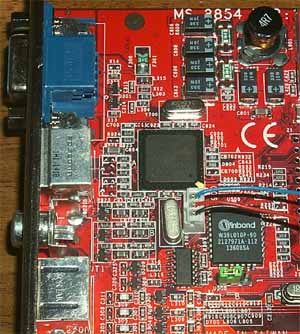 Слева, прямо напротив чипа-кодера находится гнездо для подключения VideoIn (гнездо S-Video, однако в комплекте есть переходник S-Video-to-RCA для этих целей). TV-out оборудован двумя гнездами, поэтому проблем с выводом картинки на телевизор у владельцев видеотехники, не имеющей S-Video-разъемов, не будет.
