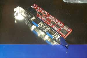 Однако мы не видим, где же на карте гнездо для подключения стерео-очков. Дело в том, что инженеры MSI, максимально используя референс-дизайн, решили воспользоваться услугами дочерней карты для целей подключения стерео-очков, как это в свое время сделал ASUSTeK, так что его очками могли воспользоваться и владельцы карт, не имеющих соответствующих гнезд. Таким, образом, комплект устройств для воспроизведения стерео-эффекта состоит из двух элементов: собственно, стерео-очков, и дочерней платы, которая вставляется в свободный отсек корпуса, не занимая при этом самого слота.
