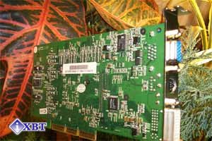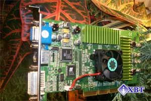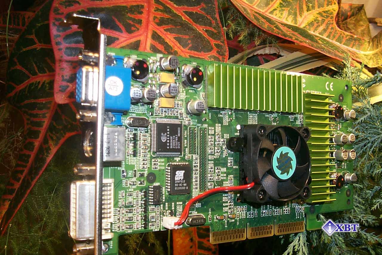 Рассматривая карту далее, можно обратить внимание на то, что данный экземпляр оборудован TV-out (гнездо S-Video, поэтому для владельцев телевизоров без гнезд S-Video такая карта не подойдет, либо надо подбирать переходник S-Video-to-RCA), а также у платы имеется интерфейс DVI для цифровых мониторов.