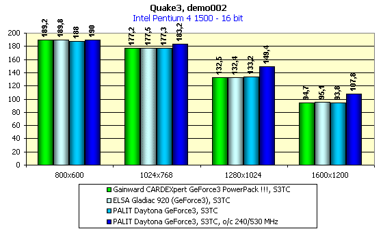 Этот тест демонстрирует то, что Palit Daytona GeForce3 по своей производительности не отличается от остальных видеокарт этого семейства (чего и следовало ожидать).