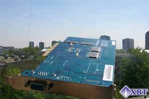 PCB имеет традиционный для Hercules/Guillemot лазурно-голубой цвет, на ней имеются пустые места под микросхемы, отвечающие за TV-out и DVI, соответствующие гнезда также отсутствуют.
