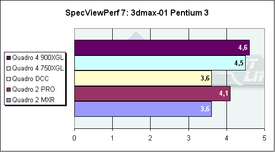 Как видно, очень хороший потенциал у линейки Quadro 4. Несмотря на общие низкие оценки в этом тесте, карты на базе этого чипа все же впереди. А небольшие показатели говорят лишь о том, что этот тест заставляет работать все карты на пределе своих возможностей и возможностей всей системы. Чуть ниже я приведу дополнительные тесты, которые несколько прояснят нам ситуацию.