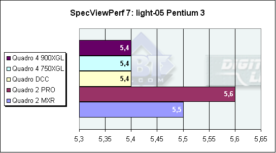 Четвертый тест Lightscape Viewset (light-05) также нам уже знаком по предыдущей версии. Lightscape Visualization System от Discreet Logic представляет новое поколение технологии компьютерной графики, которая объединяет фирменные алгоритмы излучательности и интерфейс освещенности на физической основе.