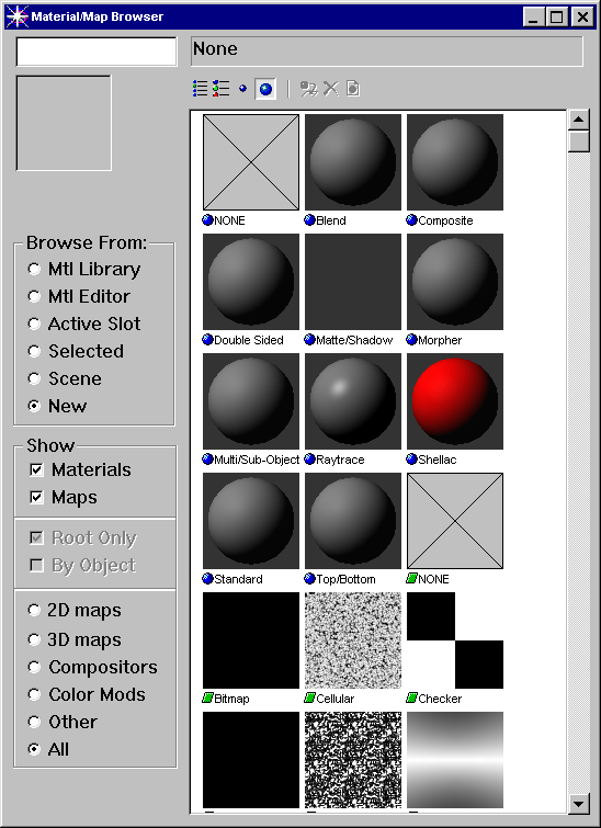 -  Просматриваем стандартную библиотеку материалов в режиме View large icons: