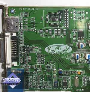 Память работает на частоте 230 (460) МГц, что уже неудивительно, так как точно такая же память установлена на платах на базе NVIDIA GeForce2 Ultra, и работает она на тех же 230 (460) МГц. Только на "ультре" установлены еще охлаждающие радиаторы, а на RADEON 7500 их нет, и судя по всему, не будет (конструкция PCB не позволяет устанавливать большие радиаторы на блоки микросхем, а монтаж мелких радиаторов на восемь микросхем процесс трудоемкий и недешевый).