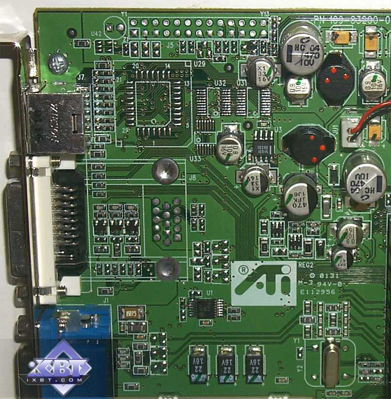 Слева фрагмент PCB RADEON 7500, справа RADEON VE. Как мы видим, несмотря на одинаковое расположение гнезд, дизайн PCB претерпел существенные изменения. Прежде всего это касается участков с логическими элементами, отвечающими за 2D-качество. Ну и сама PCB стала выше, чем мы могли наблюдать у аналогов предыдущего выпуска.