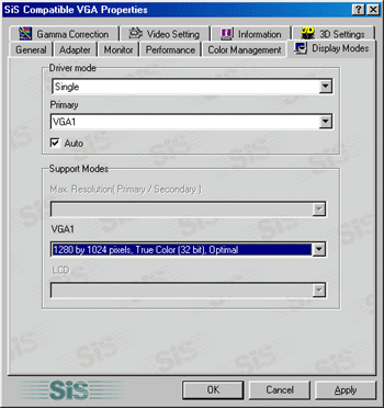 При тестировании использовались драйверы от SiS версии 2.05.02. В состав комплекта программного обеспечения входит и обслуживающая драйверы утилита, которая позволяет осуществлять ряд настроек работы карты: