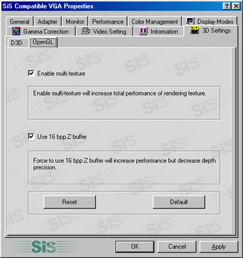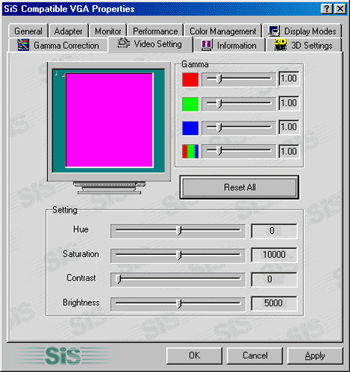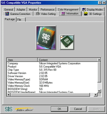 К тому же SiS постоянно и успешно работает над драйверами для своего изделия, и ныне мы уже ощущаем это в практически полном отсутствии глобальных проблем с качеством в 3D. Кстати, это и послужило причиной того, что данный материал вышел так поздно: мы ожидали новой версии драйверов, так как ранее имевшиеся были до безобразия глючны (в 3DGiТогах за летние месяцы это можно увидеть).
