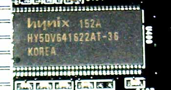 На карте установлены микросхемы памяти марки Hynix (Hyundai), время выборки 3.6 нс, что соответствует примерно 275 (550) МГц. Как вы уже могли догадаться, такая сверхбыстрая память установлена не случайно. Вспомним про суффикс SE. Да, он как раз и определяет то, что данная плата имеет такую память. Однако несмотря на такое время выборки, эти карты имеют штатные частоты 175/200 (400) МГц. Надо отметить, что в начале 2002 года вышла новая версия BIOS, которая, по словам разработчиков, уже оптимизирована для работы с такой памятью. И действительно, после прошивки этой версии мы увидели, что частоты работы карты изменились на 175/250 (500) МГц. По идее, это должно дать некоторый прирост производительности, хотя у карт такого класса главную роль в скорости играет частота процессора, а не памяти. Однако, в этом BIOS были сильно завышены тайминги по памяти, поэтому даже разгон до 550 МГц не принес особых преимуществ.