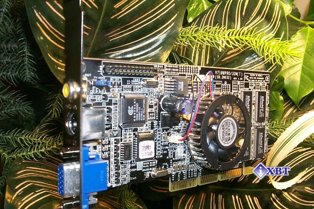 Карта ASUS AGP-V7100 Pro имеет AGP x2/x4 интерфейс, 32 Мб SDR SDRAM памяти, размещенной в 4-х микросхемах на лицевой стороне PCB.
