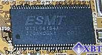 На микросхемах памяти установлены охлаждающие радиаторы, которые крепятся к PCB, поэтому их можно снять и увидеть, что модули памяти — ESMT 4ns производства фирмы EliteMT (к сожалению, надписи на микросхемах очень бледные).