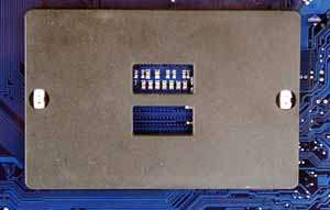 На оборотной стороне платы напротив Socket939 установлена металлическая пластина для жесткости крепления кулера к материнке: