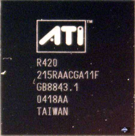 О, в маркировке в третьей строке видим, что оканчивается она на .1. Ранее, когда мы проводили уже эксперимент по переделке X800 PRO и X800 XT, отмечали, что таковой поддаются только чип с подобной маркировкой. К сожалению, такие уже достаточно узкие рамки для потенциальных X800 XT сужены еще больше: статистика говорит, что нужны чипы не только с отмеченной выше маркировкой, но и неделя изготовления должна быть 14-й (то есть в четвертой строке должно быть 0414).