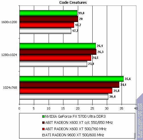 - Результаты тестов по X600 XT: Code Creatures DEMO