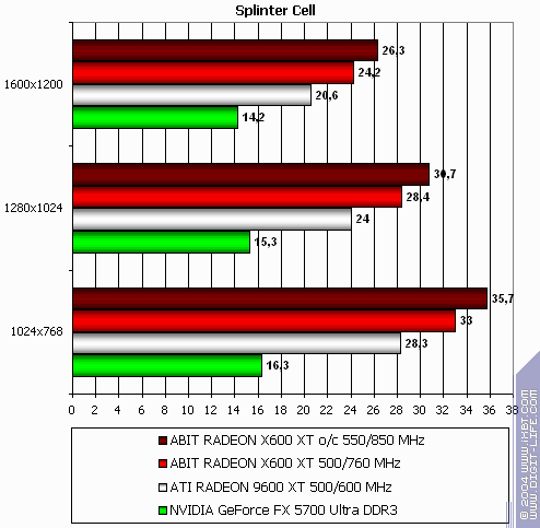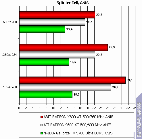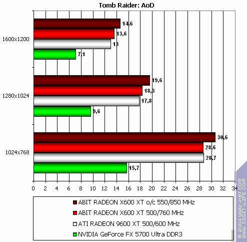 - ABIT X600 XT против NVIDIA GeForce FX 5700 Ultra  крупная победа (снова шейдеры 2.0).
