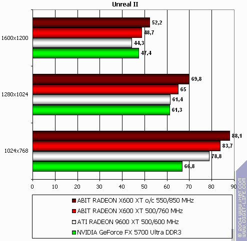 - Результаты тестов по X600 XT: Unreal II: The Awakening