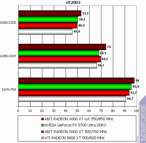 - Результаты тестов по X600 XT: Unreal Tournament 2003