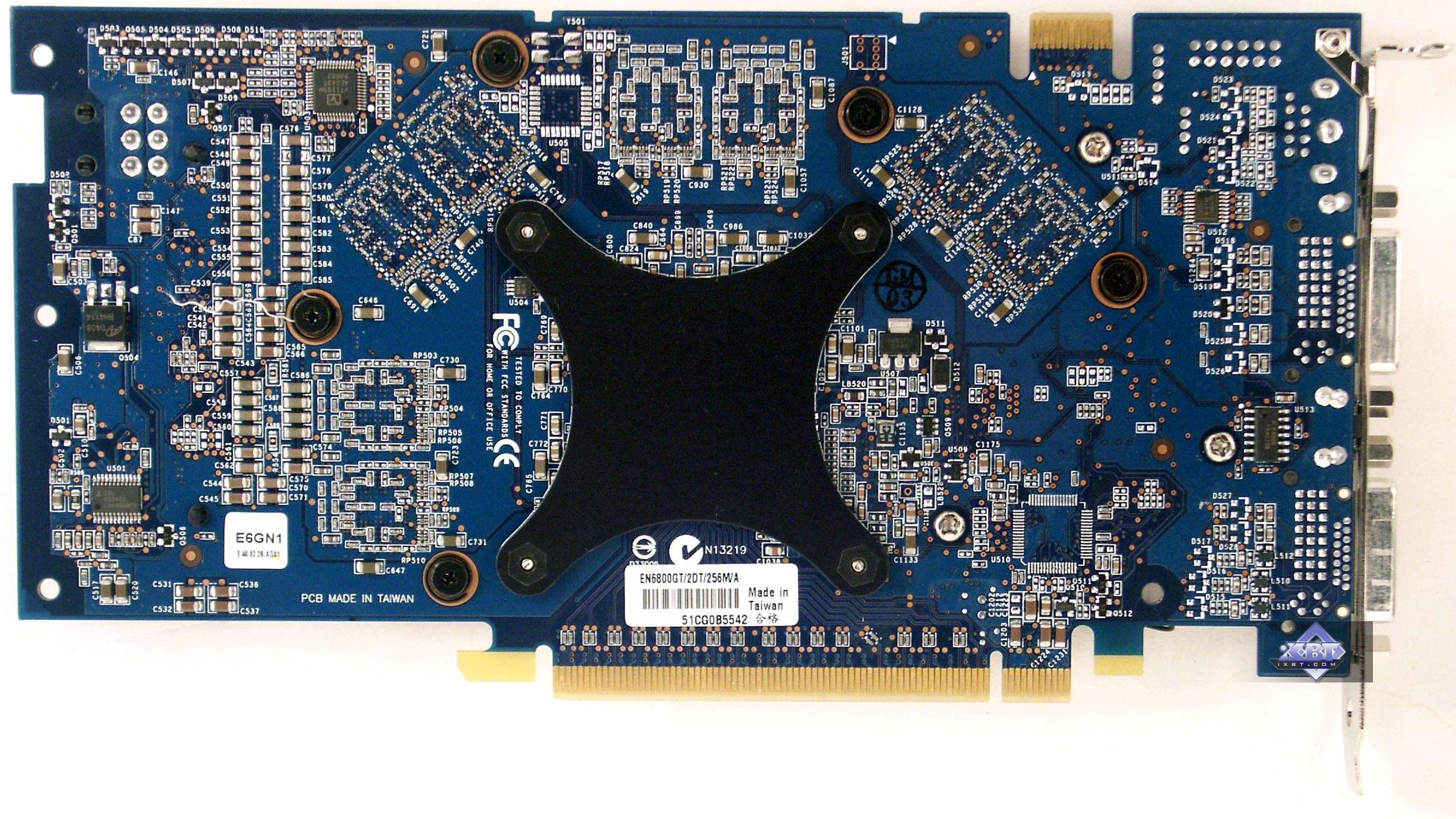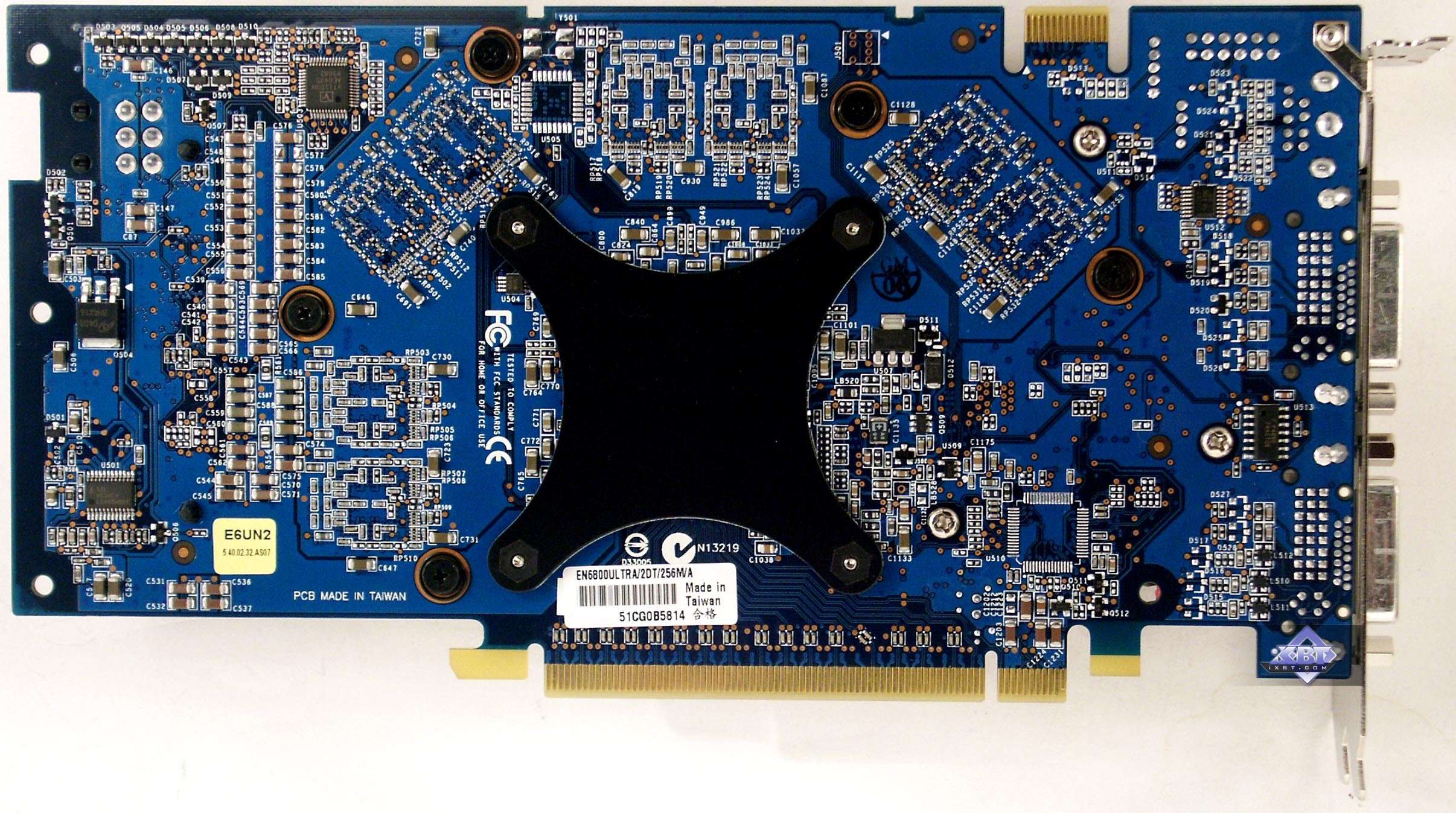 Что же, кажется, что мы снова попали в ситуацию, когда перед нами копии эталонных дизайнов. Впрочем, надо сказать, что это и хорошо, особенно для High-End карт, ведь сложность разводки очевидна, и малейший просчет инженеров может стоить стабильности в работе. А reference дизайн проверяется многократно, да и опыт выпуска карт разными фирмами может говорить о том, удачный дизайн или нет. Однако я повторю, что все карты, кроме одной (X850 XT PE) исполнены на заводах ASUSTeK. Даже GeForce 6800 Ultra! Ранее мы видели все без исключения карты на таком процессоре — даже в виде копий, в виде самих reference card, изготовленных по заказу NVIDIA также на каких-то сторонних заводах.