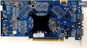 Карта имеет 256 МБ памяти GDDR3 SDRAM, размещенной в восьми микросхемах на лицевой стороне PCB. Микросхемы памяти Samsung (GDDR3). Время выборки у микросхем памяти 2,0 ns, что соответствует частоте работы 500 (1000) МГц. | ![]() |