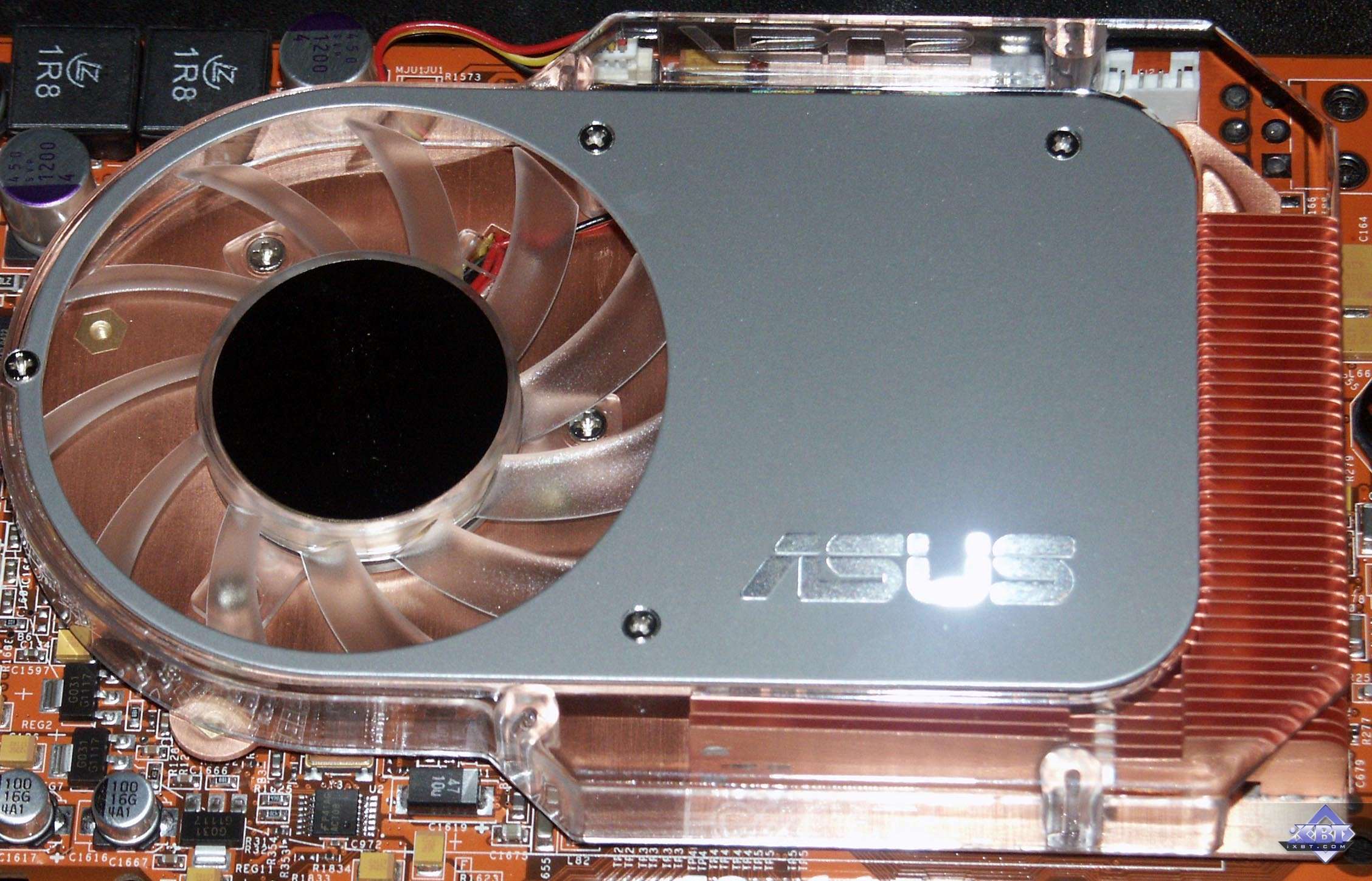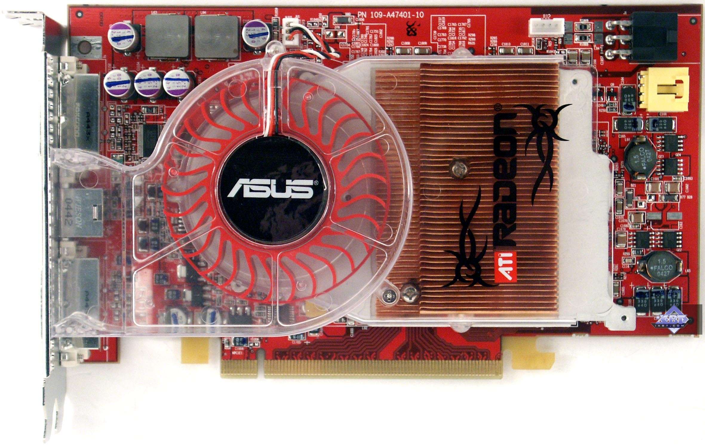 Но все же небольшое отличие у X800 XL в исполнении ASUS от эталонной карты имеется: разъем питания вентилятора карты расположен чуть правее.