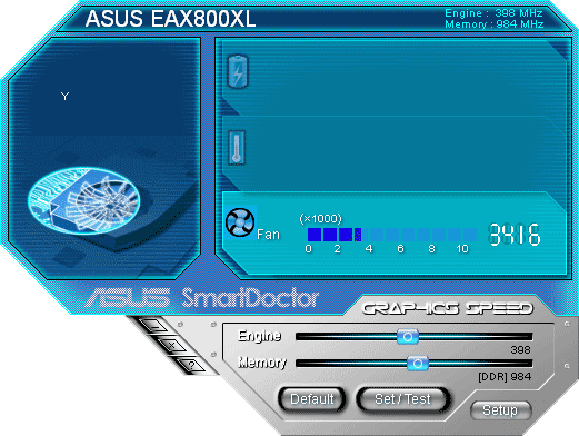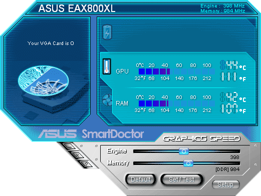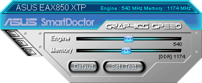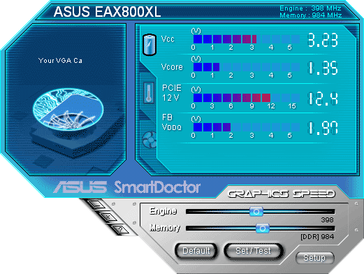 C видеокартами ASUS поставляется много разных утилит, но самая основная из них — SmartDoctor. Вот как она выглядит для каждой из протестированных карт.