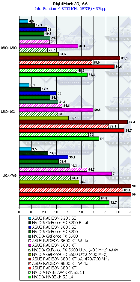 ASUS RADEON 9600SE 128MB шина тут и не помеха, шейдеры дают успехи.