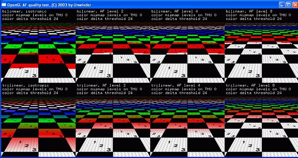 Для гарантированной активизации алгоритмов анализа чёткости текстур мы рекомендуем форсировать анизотропную фильтрацию в настройках драйвера даже в том случае, если анизотропной фильтрацией управляет само OpenGL приложение.