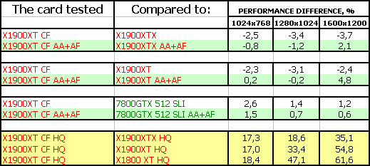 Кстати, уже по этой причине можно сказать, что X1900 CF получается формально дуэтом не самых сильных ускорителей от ATI. Но об этом позже.